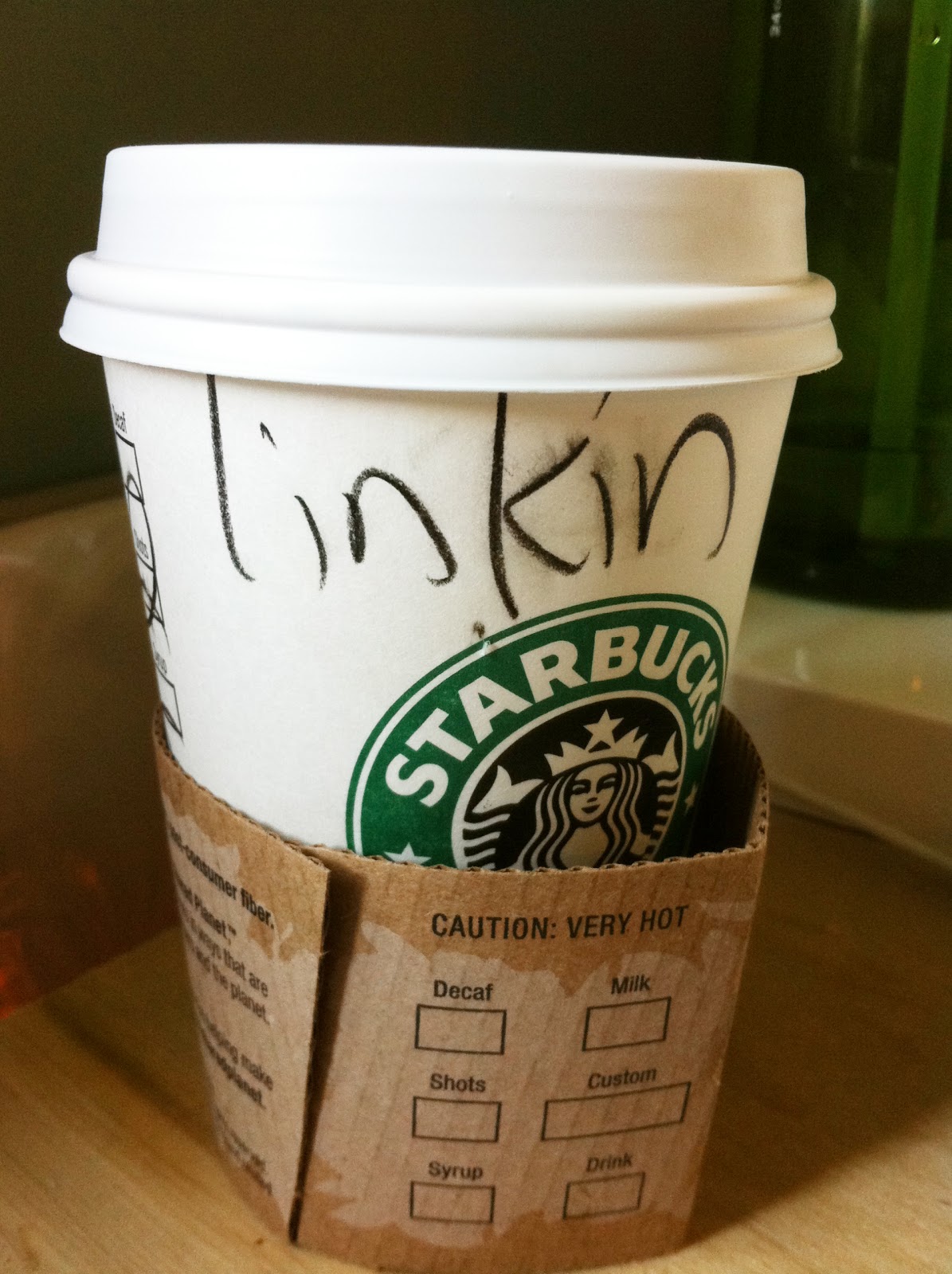 Matt was right about almost everything… the name is awesome, unique and I never have to compete with anyone else for my drinks. But I always laugh my pants off when someone at Starbucks writes my name as they do below – which SOOOO SADLY happens more frequently that you’d imagine!